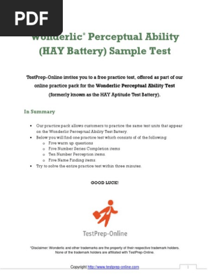 Wonderlic Perceptual Ability Sample Test Pdf Test Assessment Behavioural Sciences
